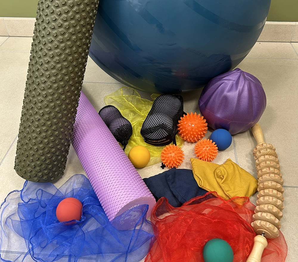 - DES AUTOMASSAGESavec des balles, bâtons ou ballons, pour relâcher les tensions et détendre le système nerveux.